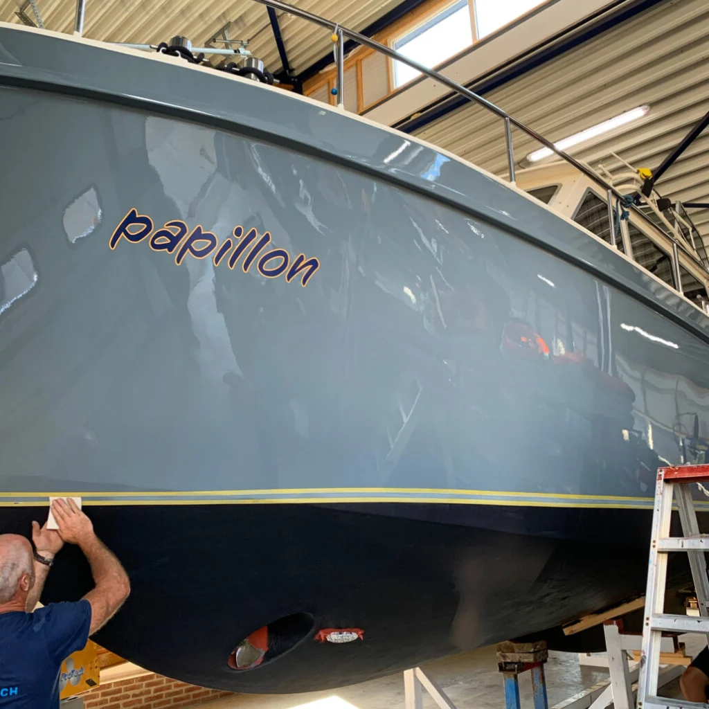 In de zomer van 2020 hebben wij ons werk uitgebreid met het verhuren van een motorjacht onder de naam “Jachtverhuur Hollandse Plassen”. Voordat we van start konden met het verhuren hebben we “Papillon” van een andere kleur voorzien (2-componentenverf).
